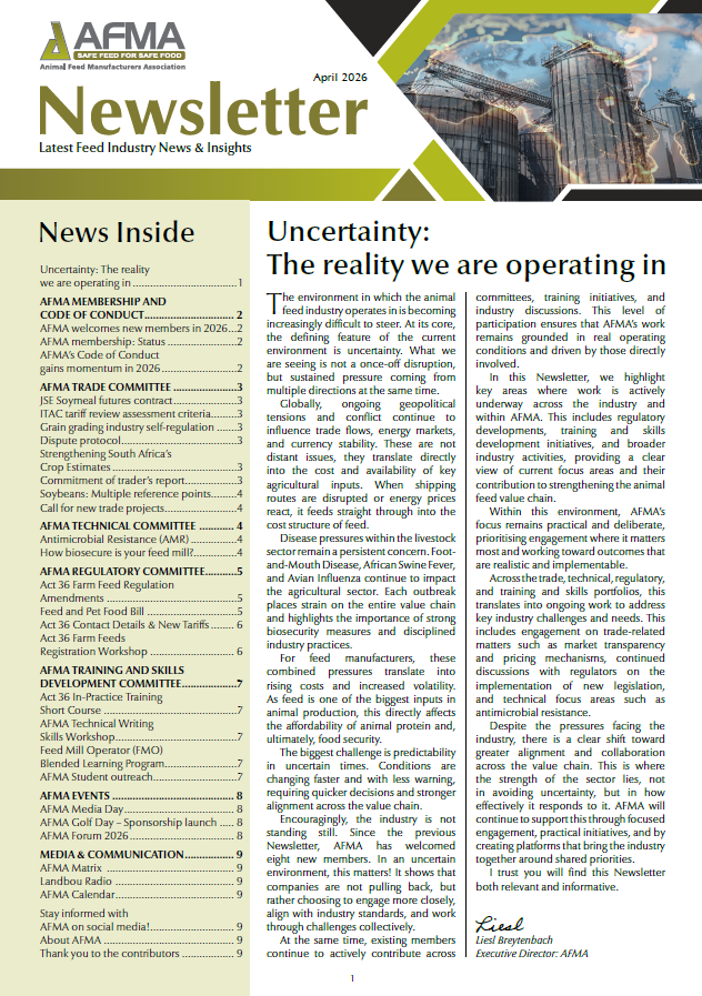AFMA is the voice of South Africa’s animal feed industry. For many years, we’ve worked alongside members across the country to help ensure animal nutrition is safe, affordable, and of high quality.