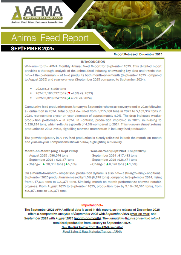 *AFMA feed production data is published with a three-month delay in compliance with the Competition Commission’s recommendation. This ensures aggregated statistics are released only once a quarter has passed, safeguarding fair competition and equal access to information.*